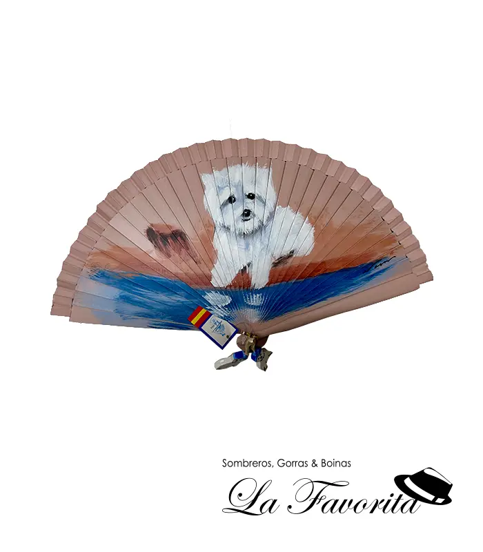 Abanico de Madera con Diseño de Perrito – Referencia 54165 (Tamaño: 21 Centímetros) – Pintado a Mano – Aire Distinto